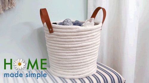 Learn how easily you can create a coil rope basket — made from natural cotton piping — and adorned with sleek leather straps.