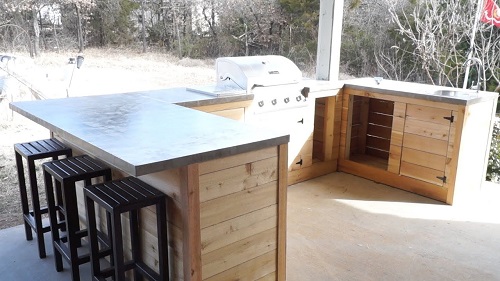 This guy is building a HUGE outdoor kitchen with a grill, sink, storage, and seating. Enjoy!