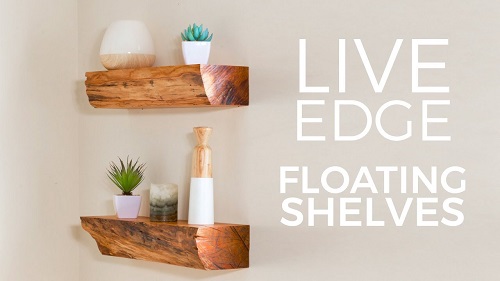 Learn how to turn firewood into live edge DIY Floating Shelves with invisible mounting hardware. A great woodworking project to use free lumber for a rustic floating shelf in your home.